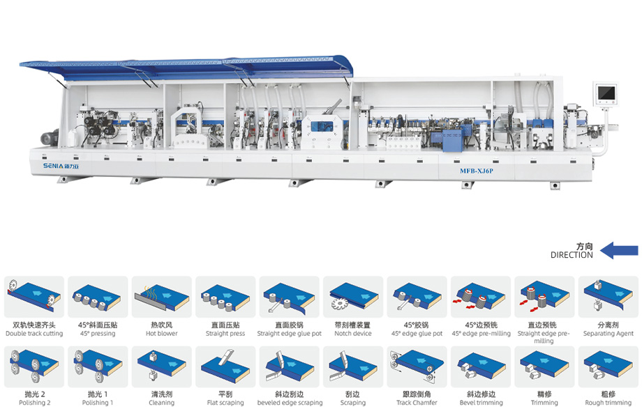 | 電動升降 | 進料速度 | 板材寬度 | 板材厚度 | 板材長度 | 封邊帶寬度 | 封邊帶厚度 | 工作氣壓 | 最小板材尺寸 | 總功率 | 外形尺寸 |